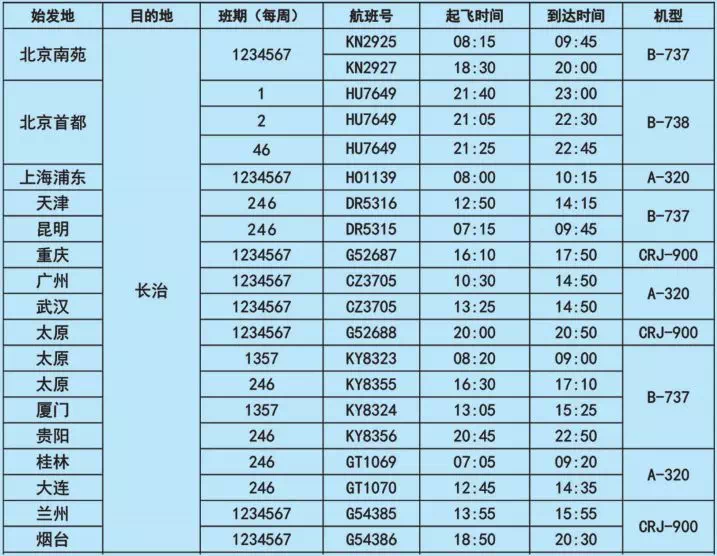 长治又将新增一座机场(附:王村机场较新航班时刻表)